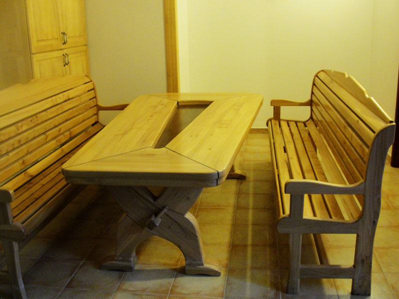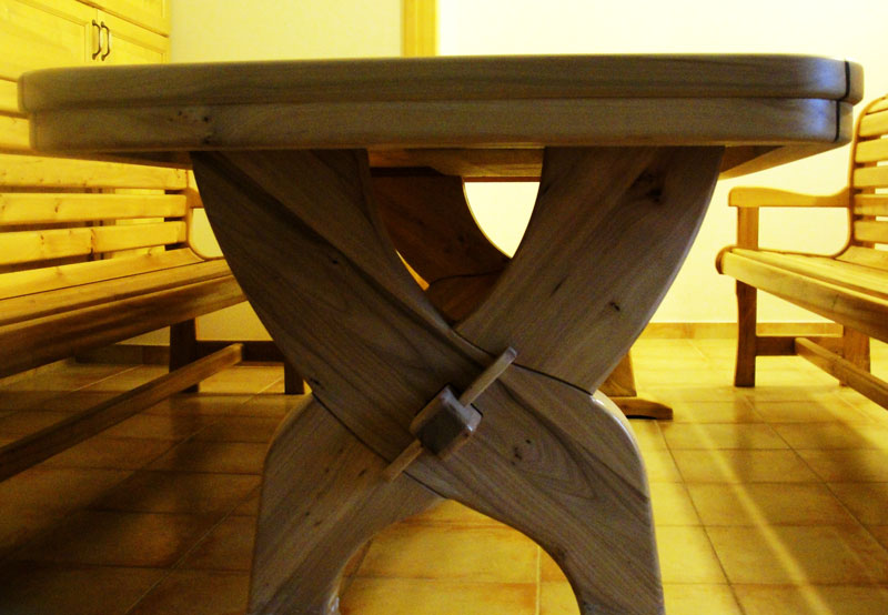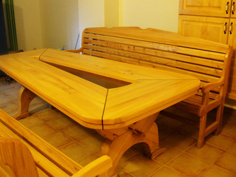- Tische werden aus massivem Holz mit der Methode durchgender oder keilverzinkter Verleimung hergestellt
