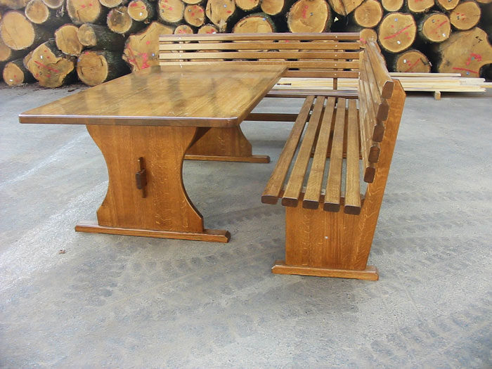 • Tische werden aus massivem Holz mit der Methode durchgender oder keilverzinkter Verleimung hergestellt