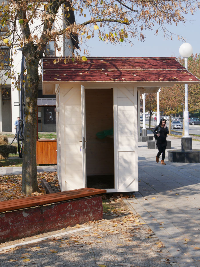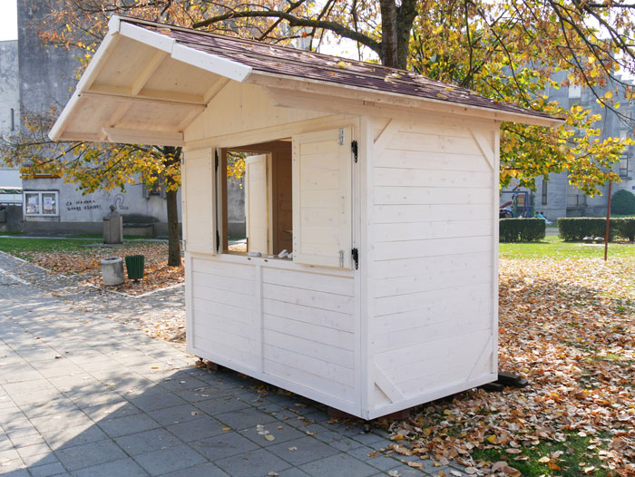 Naš novi proizvod svojom kvalitetom konkurira klasičnim adventskim kućicama, a izrađen je od ličke jelovine obojene u nježno bijelu polutransparentnu boju kroz koju je vidljiva karakteristična struktura, okovan masivnim čeličnim okovima, sa širokim krovom izrađenim od punog drveta, prekrivenim šindrom ili imitacijom crijepa limene površine prema dogovoru sa investitorom. Također kućicu karakterizira jednostavno montiranje i demontiranje.
