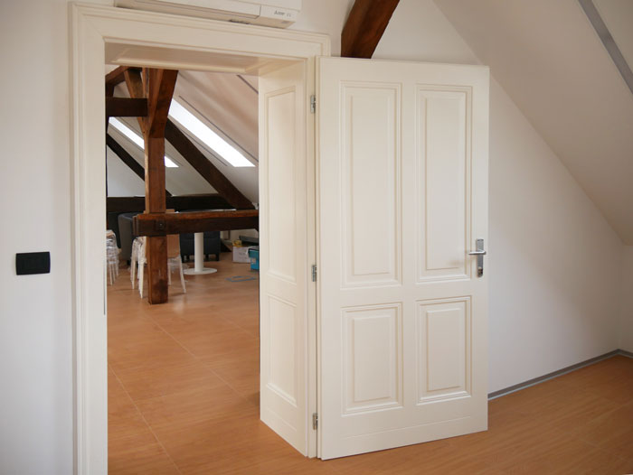 Slika 8. Masivna sobna dvokrilna vrata izrađena od jelovine u krem bijeloj boji