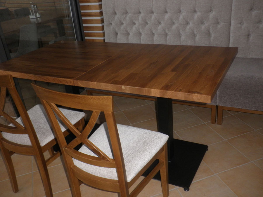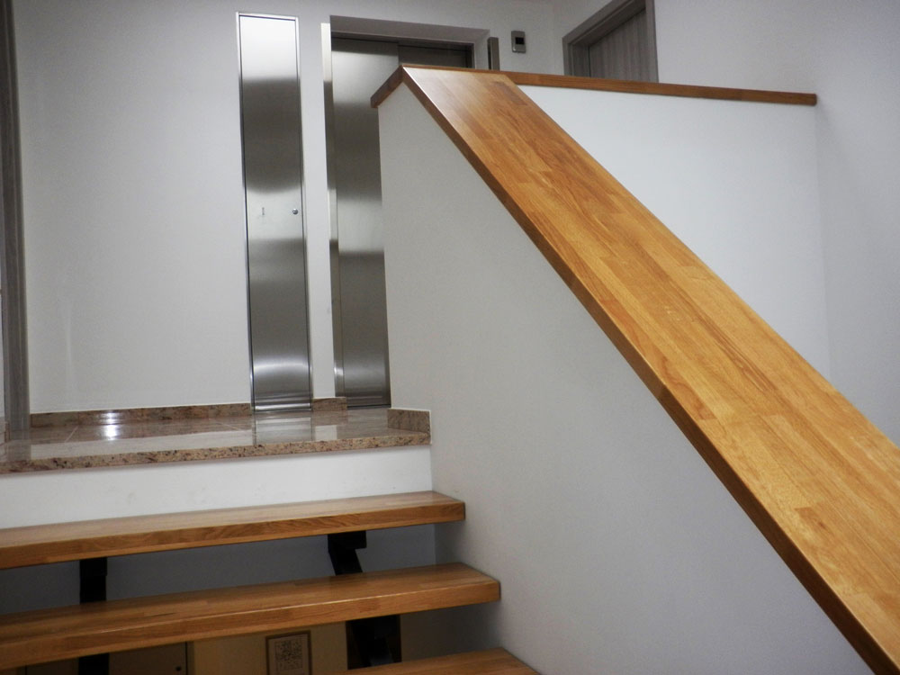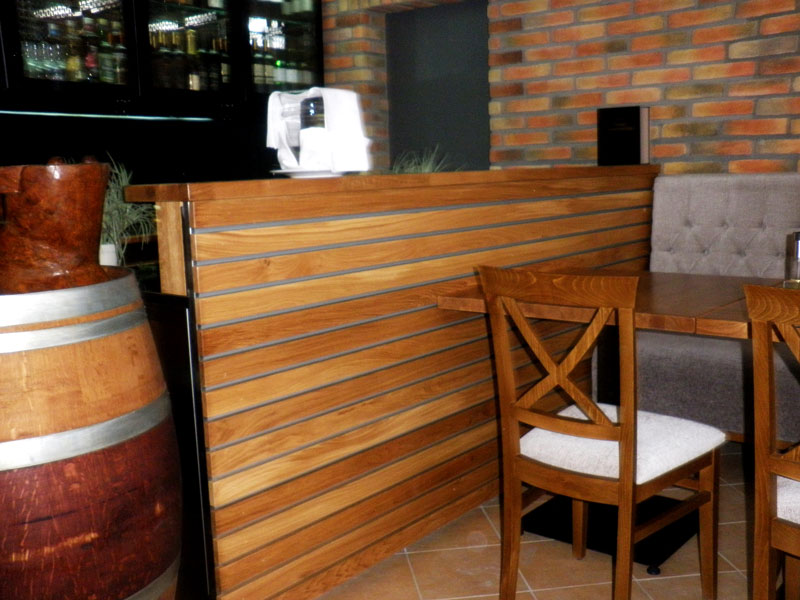 U objektu se također nalazi i mnoštvo gazišta stepenica i obloga stepenica koja smo izradili od masivnih hrastovih ploča dužinsko-širinskim načinom spajanja. Na isti način izrađeni su pult i recepcija objekta. U sklopu objekta nalazi se i bar za potrebe kojeg smo izradili oblogu šanka od masivnih hrastovih ploča, te stolove, police, obloge zidova i dr.