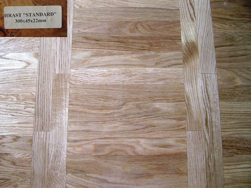 - Klasični masivni parket: hrast, javor, jasen, jasen TT, bagrem, brijest, bukva, kruška, trešnja, orah