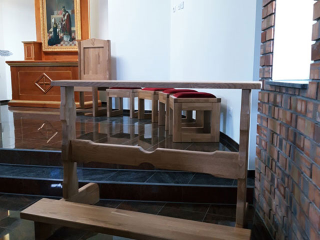 U suradnji s gosp. Robertom Klobučarom dipl. ing. arh. izradili smo namještaj za uređenje interijera crkve koji je doniran u znak potpore novo izgrađenoj Crkvi u Tisovcu.